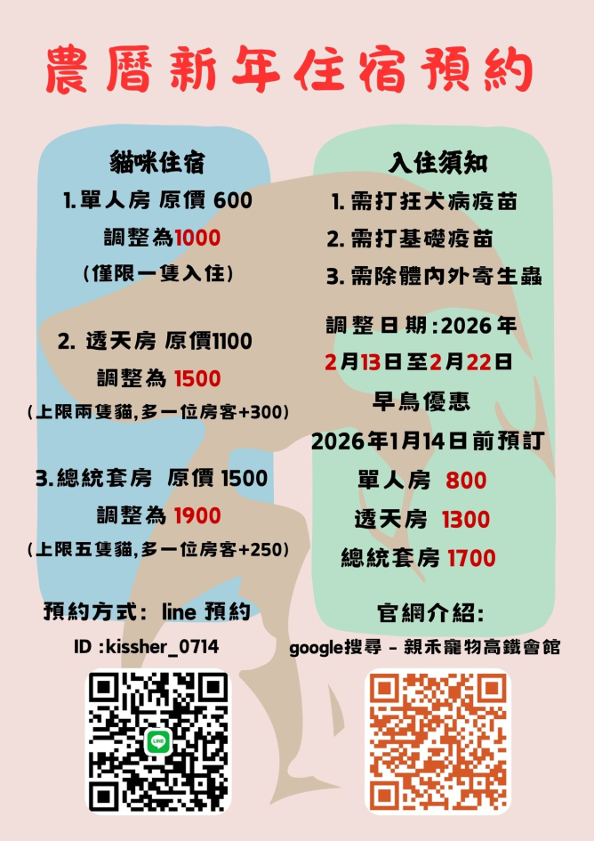 春節住宿公告: